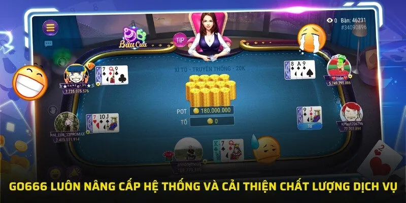 Nhằm mang lại trải nghiệm tối ưu cho khách hàng, game bài GO666 không ngừng nâng cấp hệ thống và cải thiện chất lượng dịch vụ. Các trò chơi tại sảnh luôn được cập nhật, bổ sung thêm nhiều tính năng hiện đại.
